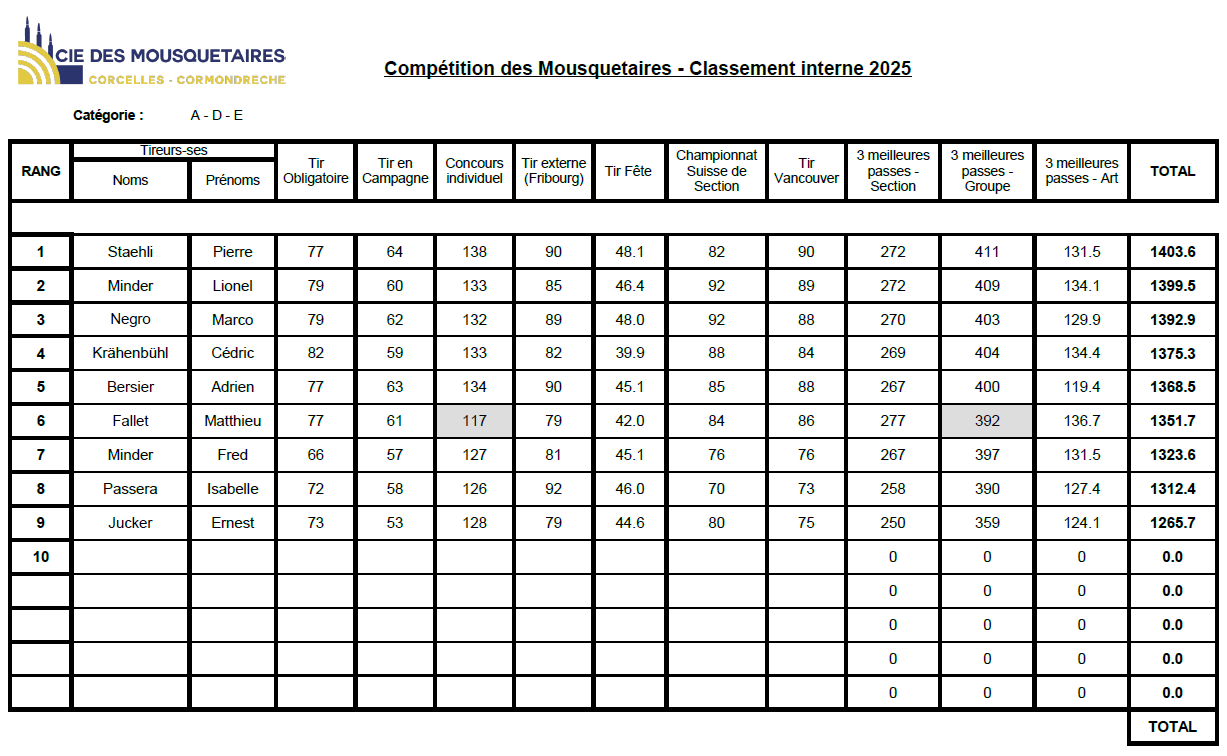 Et voici que la saison 2025 s’est terminée ! A cette occasion le classement annuel interne a été établi.