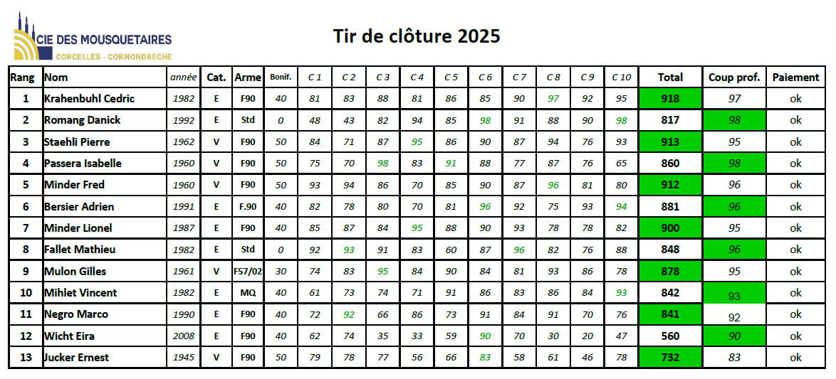 2025 – Tir clôture par Adrien Bersier | Déc 19, 2025 | 2025, Membres actifs Samedi 18 octobre 2025, la saison a, déjà, pris fin avec le tir de clôture et le tir au mousqueton.