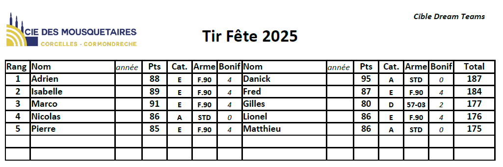 Samedi 06 septembre, notre traditionnel tir fête s’est déroulé à Chantemerle. Nos tireurs se sont affrontés sur les cibles « Chantemerle » et « Dream Teams ».